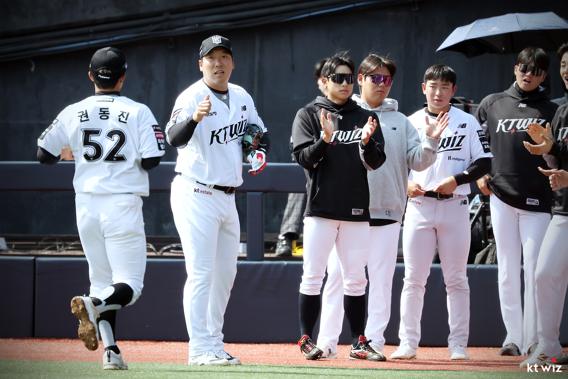 황재균과 오재일 두 베테랑 야수들이 은퇴했지만 류현인, 이원재가 상무에서 제대했고, 안인산은 2차 드래프트로 영입했습니다. 뜻밖에도 필승조 한승혁을 보상 선수로 선택했고, 이강민이라는 신인 유격수도 기대 이상의 활약을 보였습니다. 해설 중 만난 이강철 감독의 여러모로 얼굴은 밝았습니다.